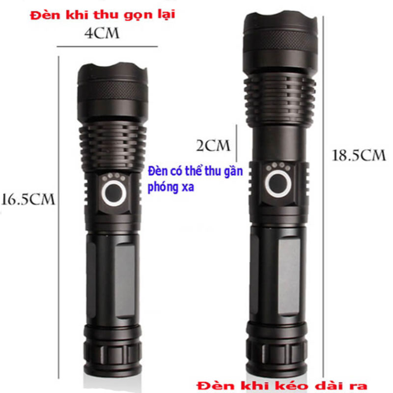 - Đèn pin cầm tay siêu sáng XHP50 chiếu xa 500m có Zoom xa gần, chống nước IP65, pin trâu